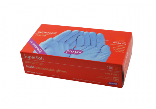 PROVAL Nitrile PF SuperSoft Blue Gloves -Box of 100 avail in XS,S,M,L,XL