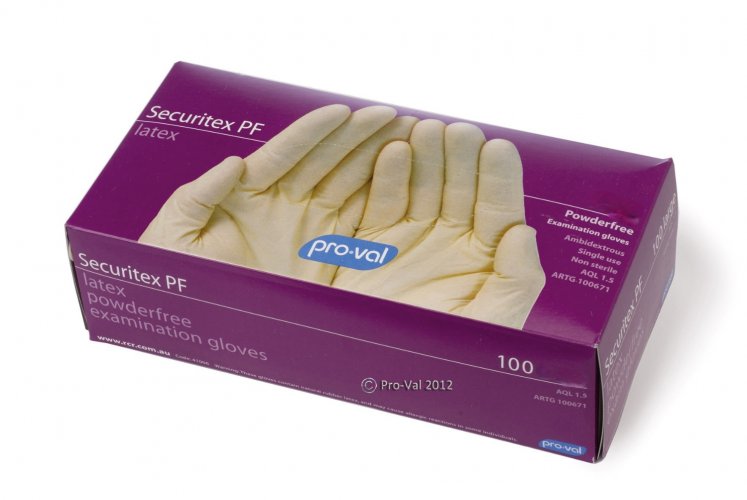 PROVAL SECURITEX Latex PF Gloves Carton of 10 boxes avil in XS,S,M,L,XL